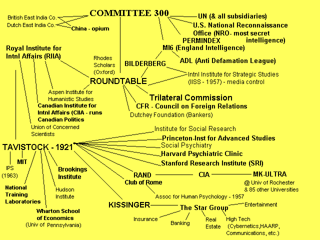 Mianowicie aby odkryć kto kontroluje rządy Wielkiej Brytanii i Stanów Zjednoczonych. Dokładnie zapoznałem się z wszystkimi tajnymi stowarzyszeniami, takimi jak Królewski Instytut Spraw Międzynarodowych, Rada Stosunków Zagranicznych, Bilderberg, Komisja Trójstronna, Syjoniści, Masoni, Różokrzyżowcy Bolszewiccy i cały spin-off tajnych stowarzyszeń...Jednak w 1969 roku natknąłem się również na takie nazwy jak Zakon Szpitala Św. Jana z Jerozolimy, Klub Rzymski, Niemiecki Fundusz Marshalla, Fundacja Giorgio Cini, Okrągły Stół, Fabianiści, Wenecka Czarna Szlachta, Towarzystwo Mont Pelerin, Klub Piekielnego Ognia i wiele innych, które są kompletnie nieznane, lub których prawdziwe funckje, jeżeli w ogóle są znane, w najlepszym przypadku są źle pojmowane."